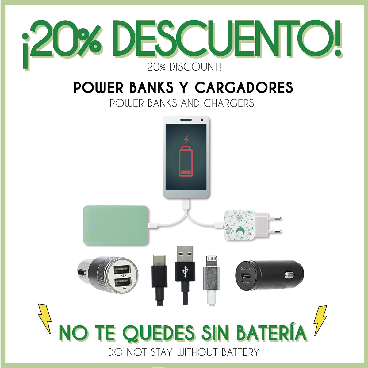 ¿Necesitas cargar tu móvil? 20% de descuento en cargadores y baterías portátiles.