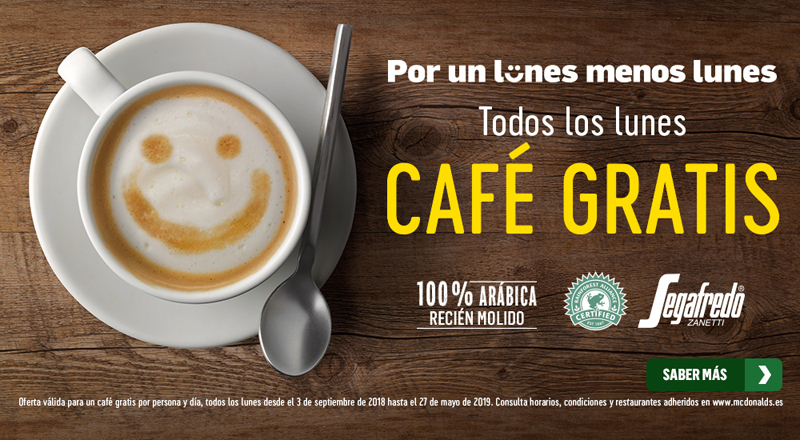 Todos los lunes en McDonald’s ¡CAFÉ GRATIS! Haz que tus lunes sean menos lunes.