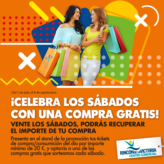 Vente los sábados, podrás recuperar el importe de tu compra al presentar en el stand de la promoción tus tickets de compra/consumición del día por importe mínimo de 20€ y optarás a una de las compras gratis que sorteamos cada sábado.