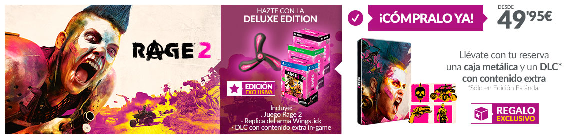 Ven a tu tienda GAME Centro Comercial Rincón de la Victoria y compra ya Rage 2. Te llevarás de regalo una caja metálica y un DLC* con contenido extra.