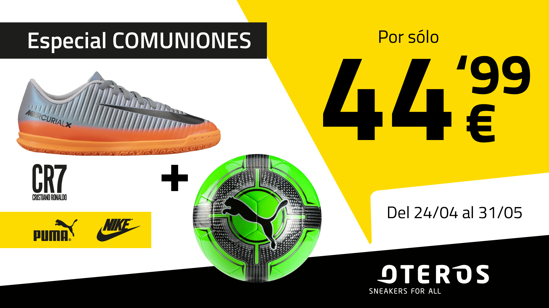 Zapatillas de deporte CR7 MercurialX Nike + balón de fútbol Puma por 44,99€.