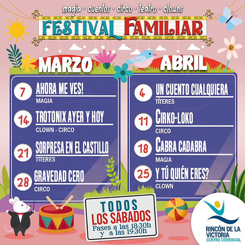 Te esperamos todos los sábados a partir de las 18:30 en la plaza de acceso a planta alta de C.C. Rincón de la Victoria.