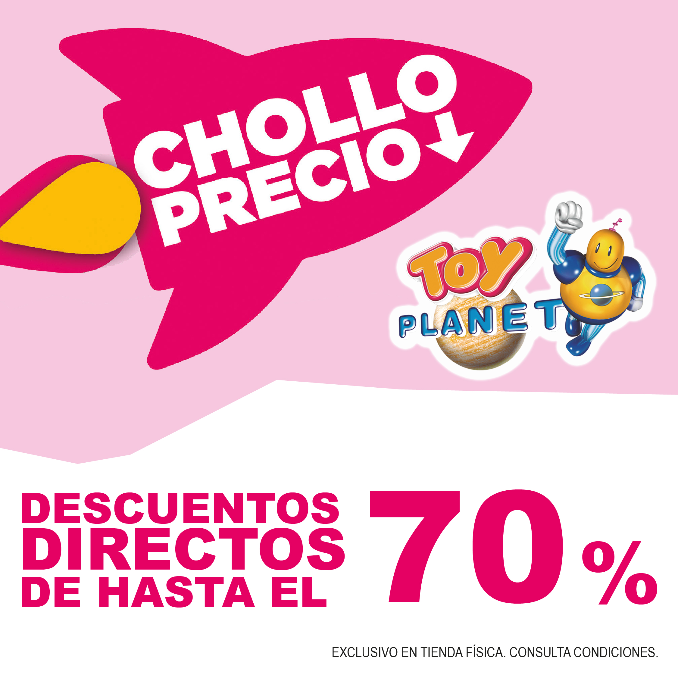 No dejes escapar esta oferta de nuestra tienda Toy Planet en C.C. Rincón de la Victoria. Ven y descubre los chollos de Toy Planet con descuentos directos de hasta 70% ¡Date prisa!