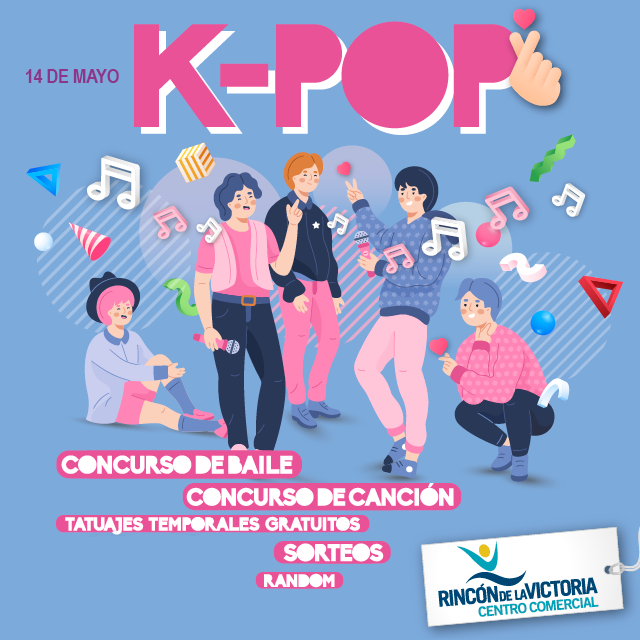 El Concurso de Baile y Canción K-Pop, destinados para participantes a partir de 9 años, tendrá lugar en el Centro Comercial Rincón de la Victoria, el sábado 14 de mayo de 2022 dentro de la franja horario de las 16.00 a las 22.00h junto al resto de actividades previstas en torno al mundo del K-Pop.