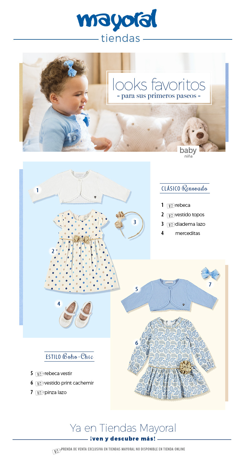 Mayoral te recomienda estos dos looks de bebe para chica: