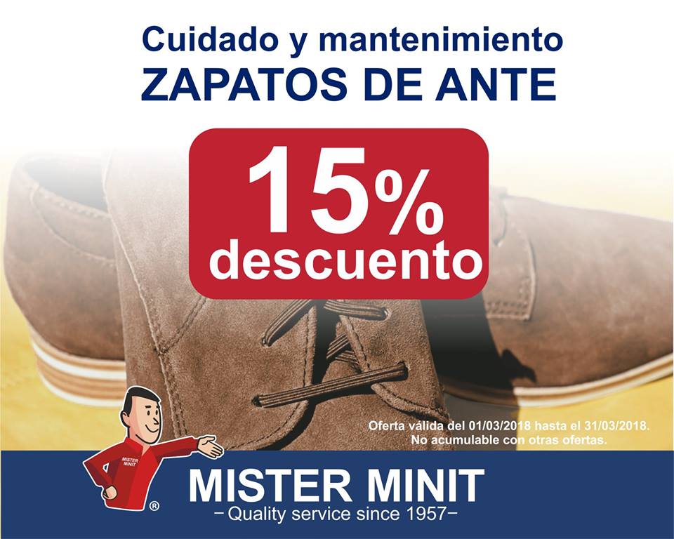 Este mes de marzo descuento en productos para tu calzado de ante. Descubre el reparador de ante o las esponjas especiales. * Promoción válida hasta el 31/03/2018.