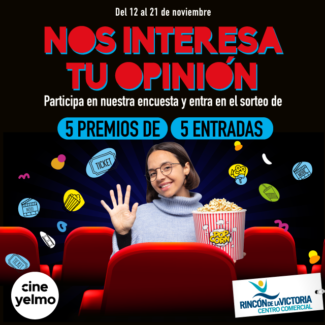 Del 12 al 21 de noviembre, participa en esta encuesta y entra en el sorteo de 5 packs de 5 entradas para Yelmo Cines Rincón de la Victoria.
