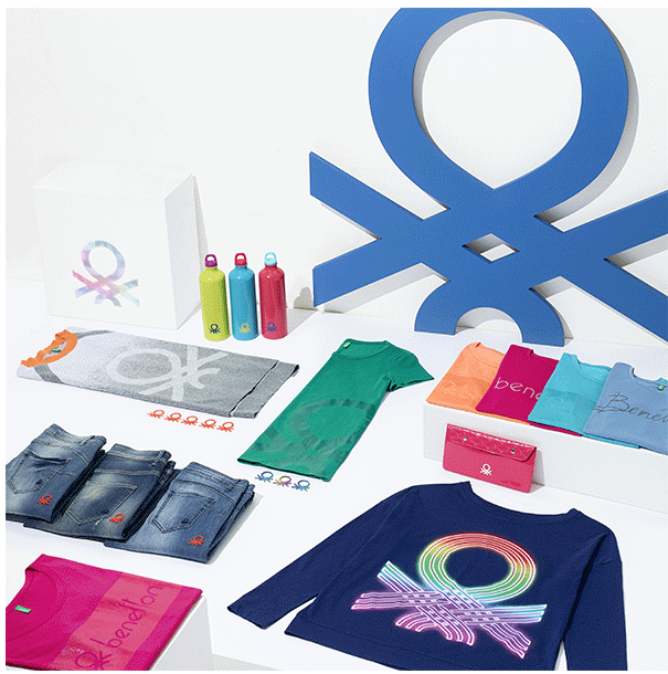 Una colección con el icono de Benetton en primera línea: en versión mini, en tonos coordinados o en contraste, el logo aparece bordado en vaqueros y polos. En formato maxi se vuelve multicolor o lettering, plasmado en camisetas, sudaderas y accesorios.