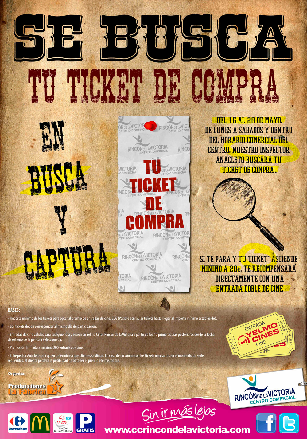 Del 16 al 28 de mayo, de lunes a sábados y dentro del horario comercial del centro, nuestro inspector Anacleto buscará tu tícket de la compra.