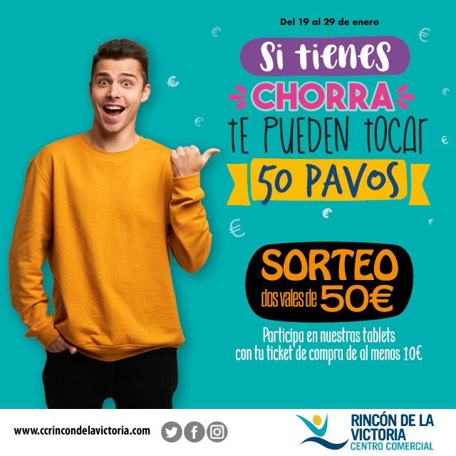 2. El premio, para cada uno de los 2 ganadores, consiste en 50€ para compras/consumiciones en un establecimiento de Centro Comercial Rincón de la Victoria.