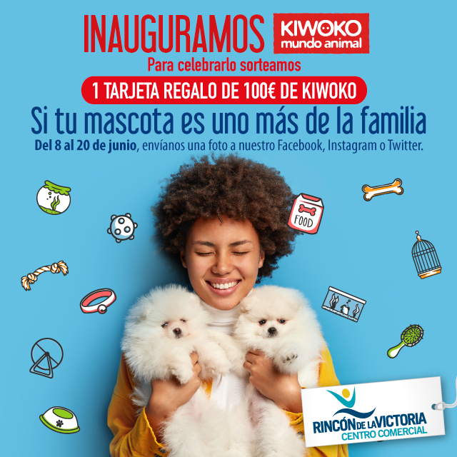 Del 8 al 20 de junio, con motivo de la inauguración de Kiwoko Mundo Animal, sorteamos una tarjeta de 100€ para gastar en esta nueva tienda de nuestro centro comercial.