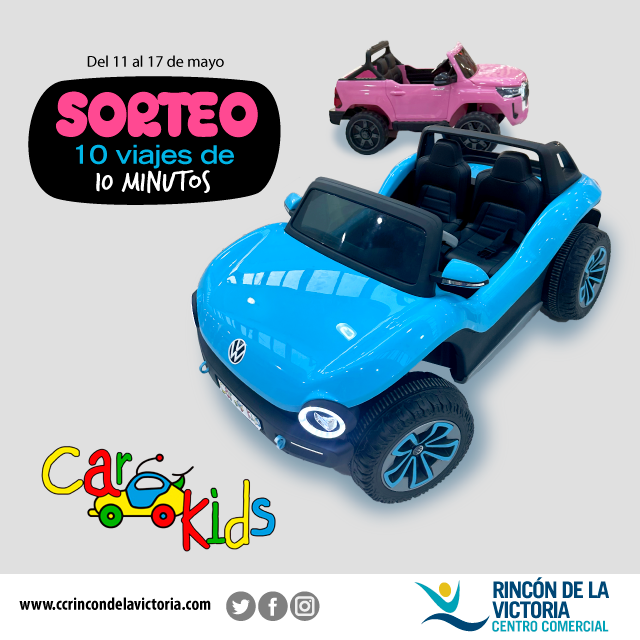 5. El premio, para cada uno de los 10 ganadores, consiste en un viaje de 10 minutos en uno de los cochecitos de Carkids de Centro Comercial Rincón de la Victoria.