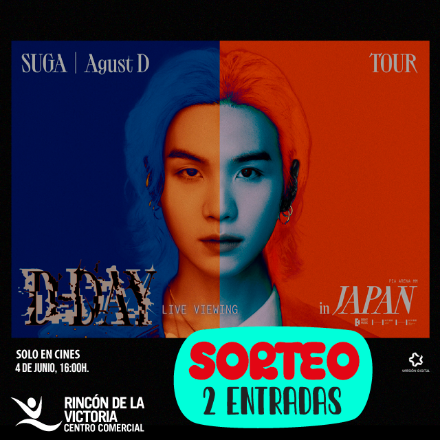 5. El único premio es una entrada doble para ver Suga D-DAY en Directo en Japón (domingo 4 junio a las 16:00 en directo desde Japón) en Yelmo Cines de Centro Comercial Rincón de la Victoria.