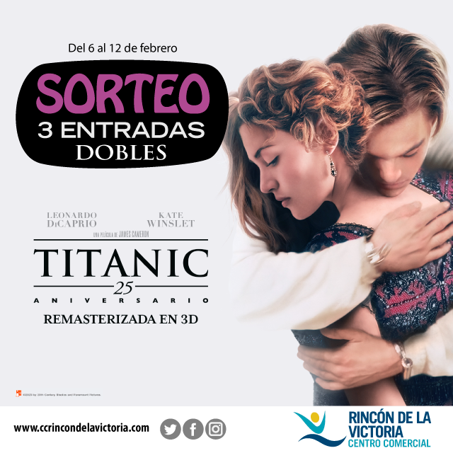 Hasta el 12 de febrero, entra en nuestro Facebook o Instagram y participa en el sorteo de 3 entradas dobles para Titanic 3D en Yelmo Cines Rincón de la Victoria.